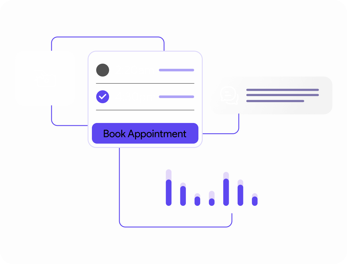 With smart Conversation AI and Voice AI, your virtual agent can text and call your leads, answer questions, qualify leads, and book appointments.